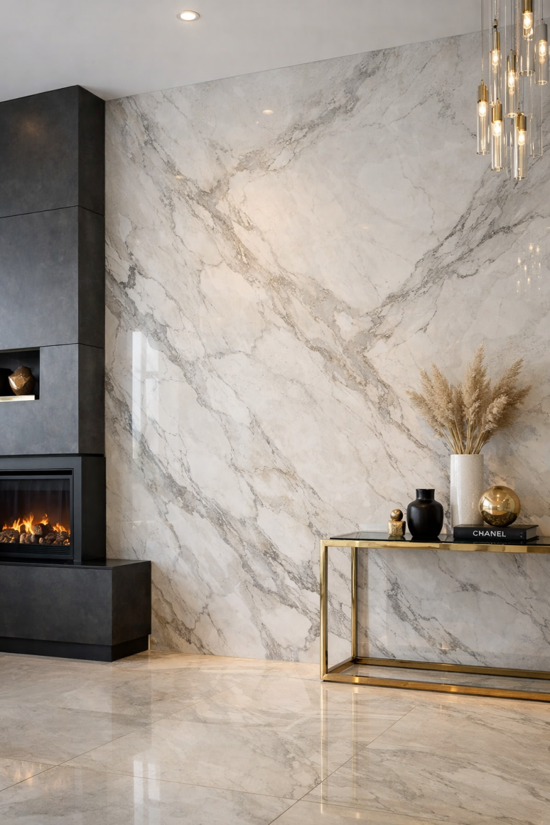 From soft neutral stone tones to bold Calacatta-inspired veining, every finish is designed to complement the architecture of your space.